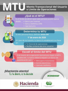 Si te preocupa el nuevo límite de transferencias MTU y no te queda claro, aquí puedes ver una fácil y clara explicación de la Comisión Nacional para la Protección y Defensa de los Usuarios de Servicios Financieros (Condusef).